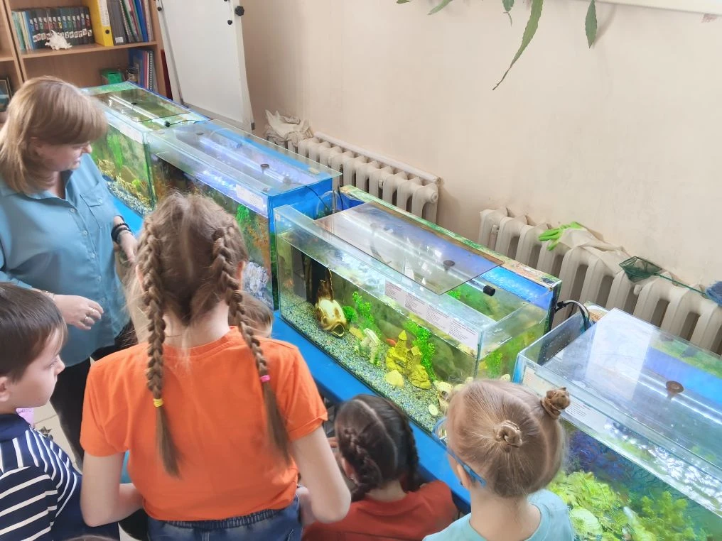 Особое впечатление на ребят произвели обитатели живого уголка. С каким интересом они разглядывали кроликов и попугаев в клетке и многое другое. Разнообразие рыб в аквариумах тоже вызвало неподдельный интерес у детей.