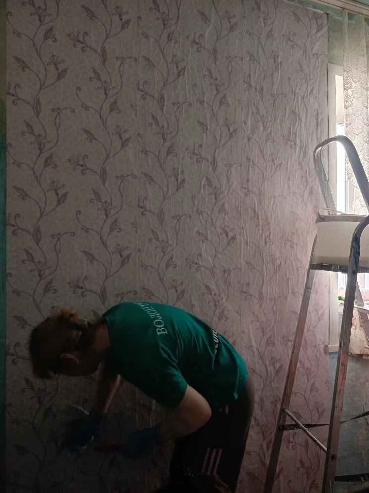24 апреля волонтёры завершили оказание адресной помощи пожилой пенсионерке — успешно закончили поклейку обоев в её квартире.