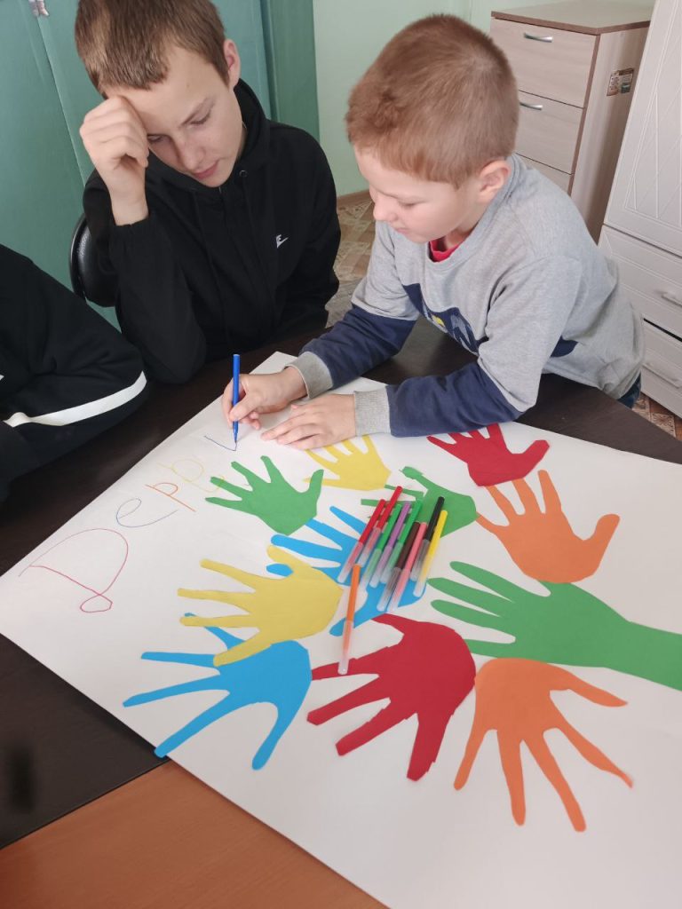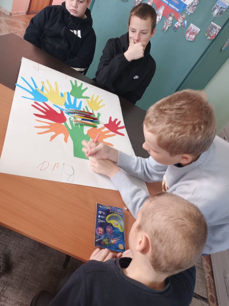 В конце мероприятия ребята решили создать «Дерево Дружбы», вешая на него разноцветные ладошки, тем самым выражая своё единство.