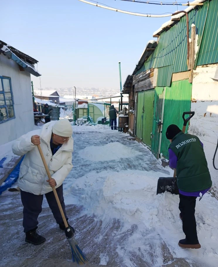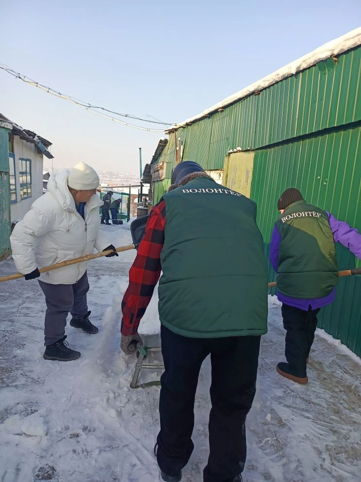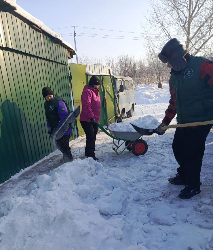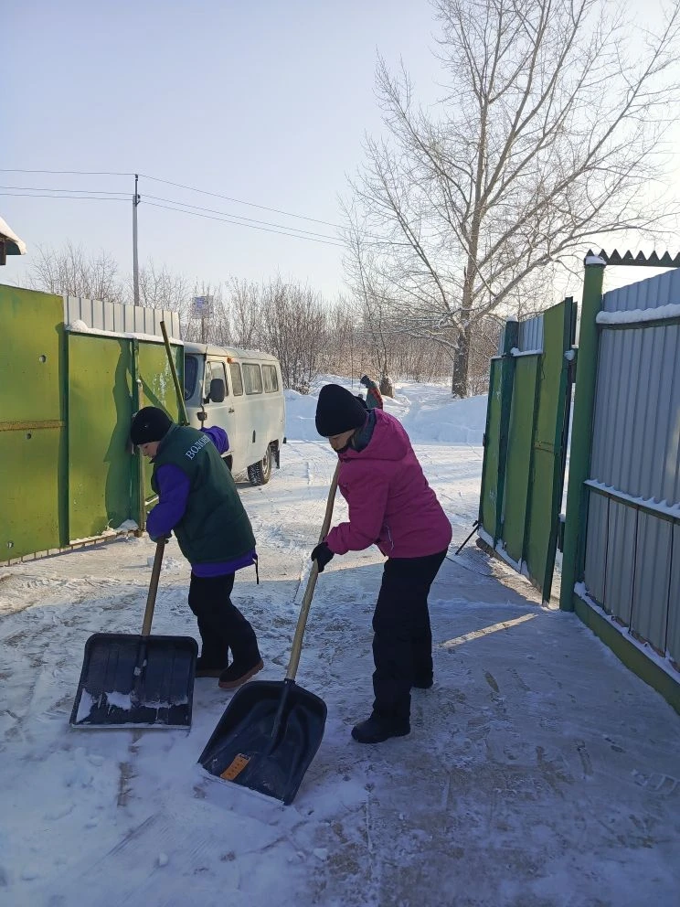 06 февраля активисты волонтерского отряда Центра семьи «Ужурский» «Я+Мир» приняли участие в добровольческой акции «Февральский снег». Ребята пришли на помощь семье пенсионеров, нуждающимся в ней. Добровольцы очистили от накопившегося за зиму снега дворы и приусадебные участки, откидали плотные сугробы от домов.