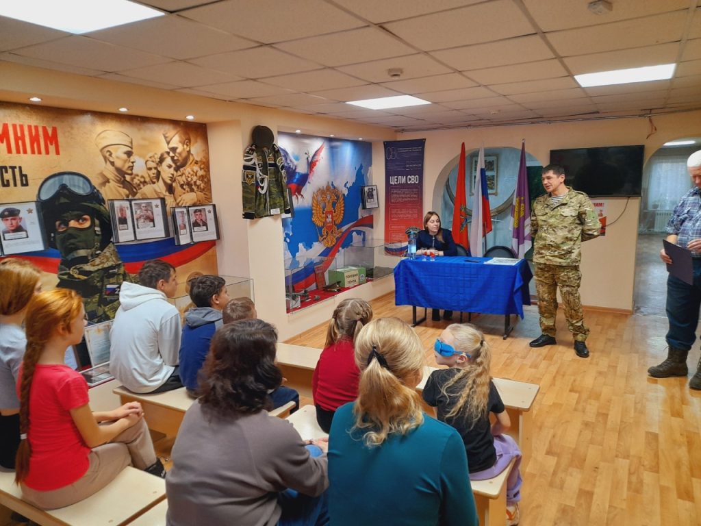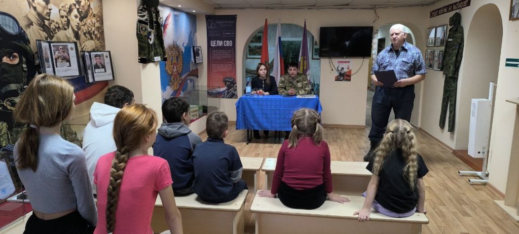 В рамках мероприятий, посвященных Году защитника Отечества и 80-летия Победы в Великой Отечественной войне, в стенах музея состоялась встреча воспитанников и педагогов Центра семьи «Ужурский» с героем нашего времени, участником специальной военной операции — Золотухиным Дмитрием Тимофеевичем и его супругой Элиной Шахиновной.