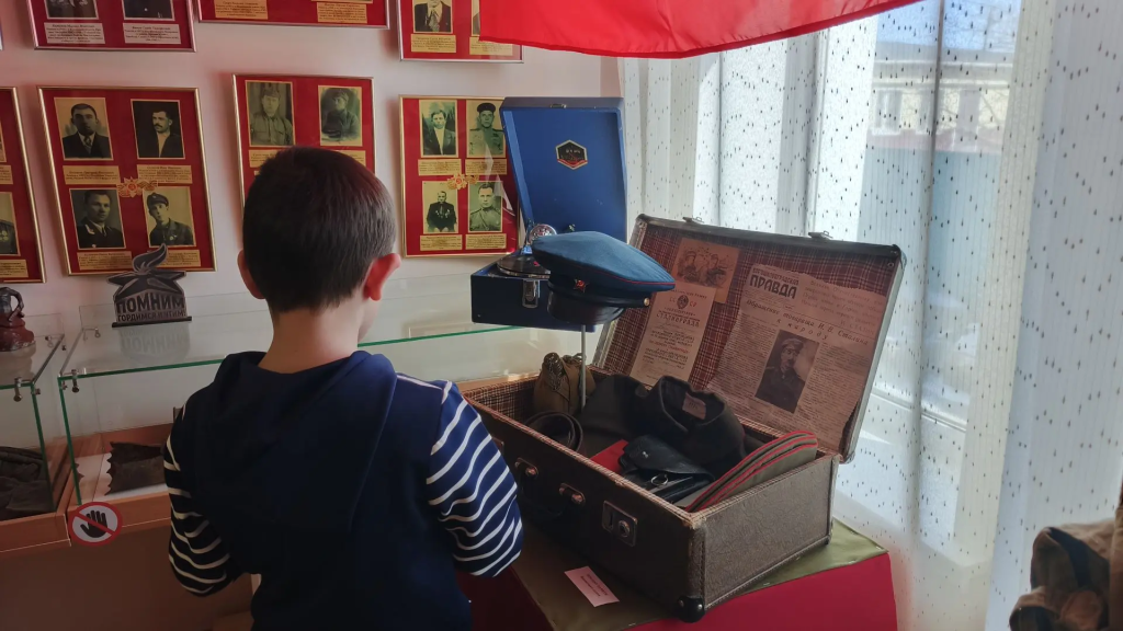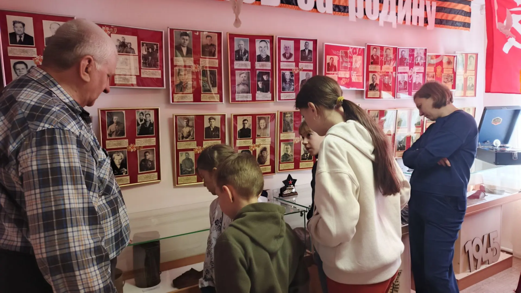 В зале «Боевой славы», посвященный Великой Отечественной войне, были представлены фотопортреты ветеранов войны, списки награжденных орденами и медалями. В витринах — награды и наградные удостоверения, благодарственные письма, фронтовая переписка, личные вещи участников войны, макеты оружия.