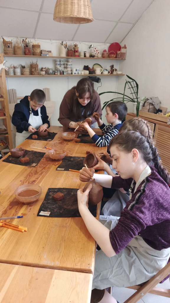 Ребята приняли участие в мастер-классе по изготовлению и росписи глиняной тарелки В процессе мастер-класса ребят познакомили с основными способами формовки глины, а также обучили работе с поверхностью изделия, затиранию и замыванию готовых работ. Мастер познакомила с правилами сушки изделий, подготовкой к обжигу. Осталось готовые изделия высушить в специальной печи.