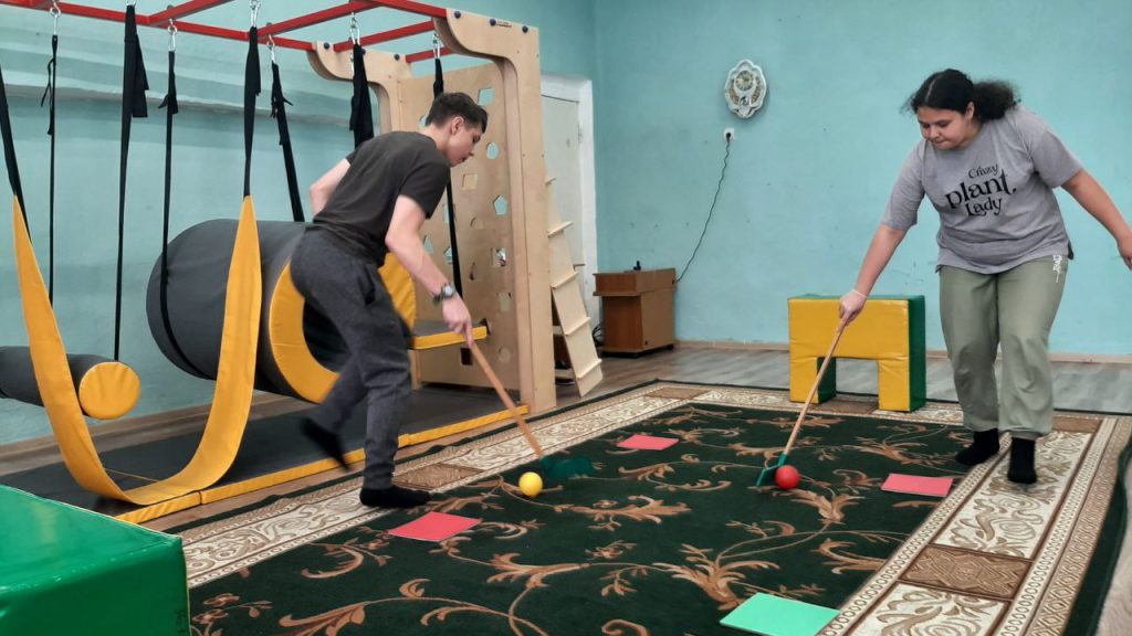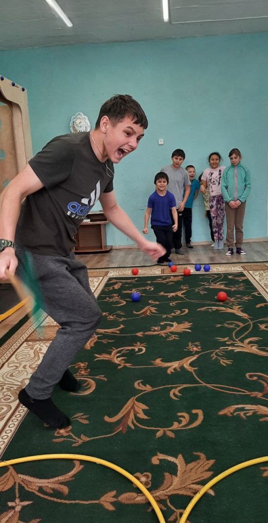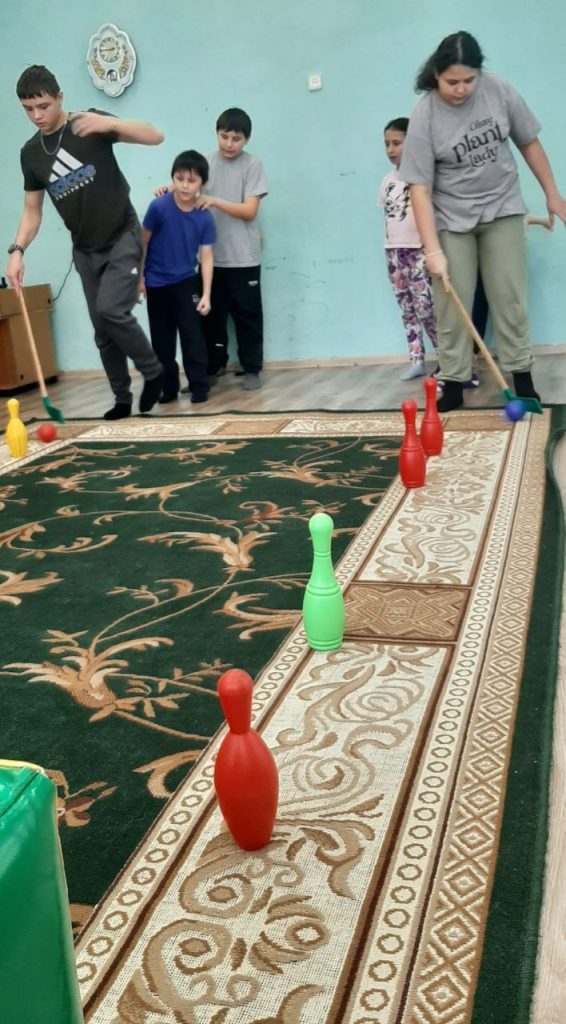 На улицу выйти было сложно из-за суровых погодных условий, однако проведение такого мероприятия стало возможным благодаря организации игры в уютной спортивно-игровой комнате учреждения.