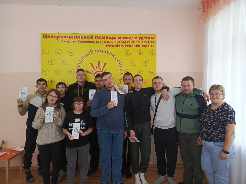 20 ноября в рамках Всероссийского дня правовой помощи со студентами многопрофильного техникума «Ужурский» специалистами в Центре семьи «Ужурский» прошла интерактивная игра «Имею право» Основной целью, которого явилось повышение правовой компетенции несовершеннолетних в целях защиты своих прав, свобод и законных интересов