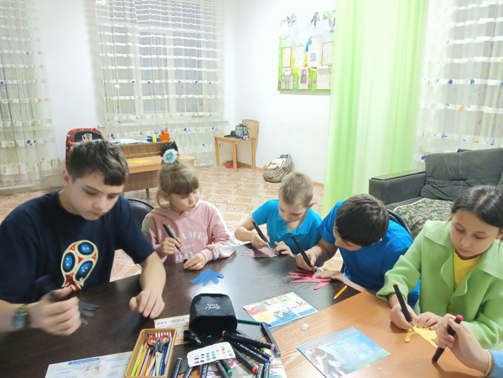 А в завершении телефон доверия 8 800 2000 122 все ребята, чтобы запомнить записали на своих ладошках, которые нарисовали и вырезали из цветной бумаги.