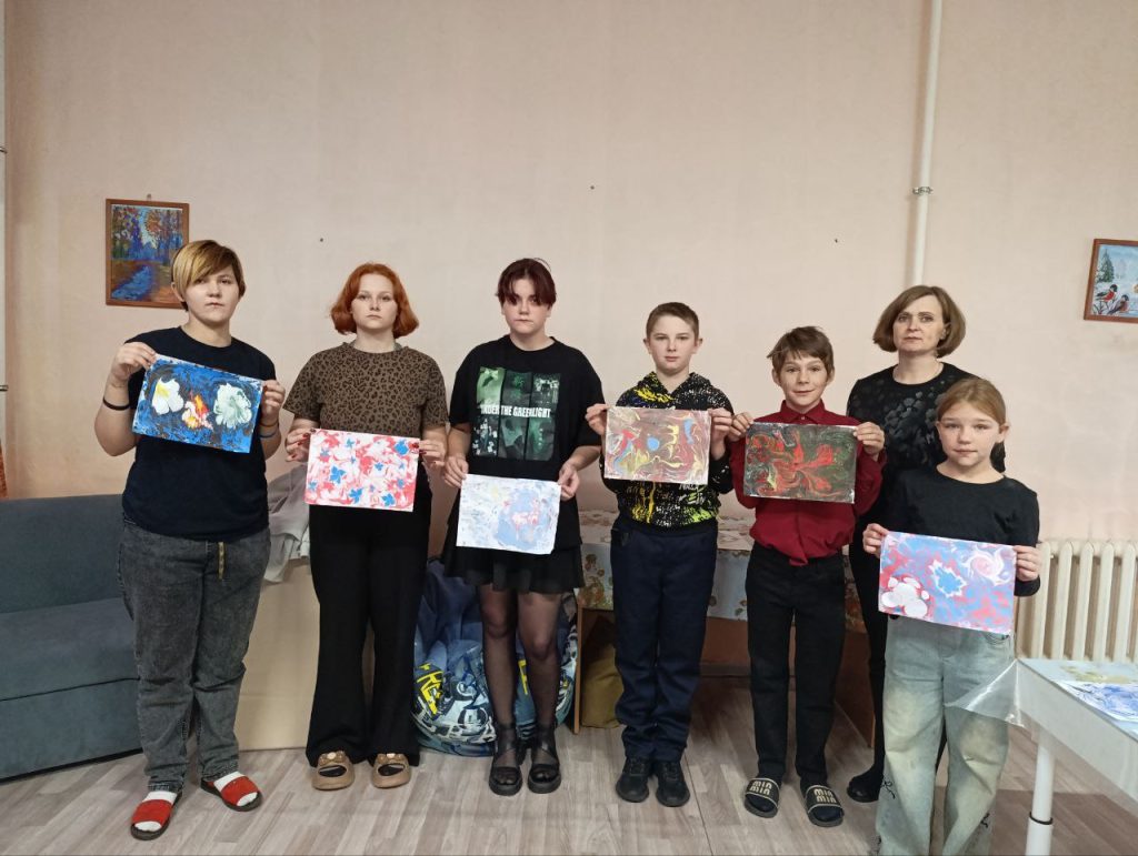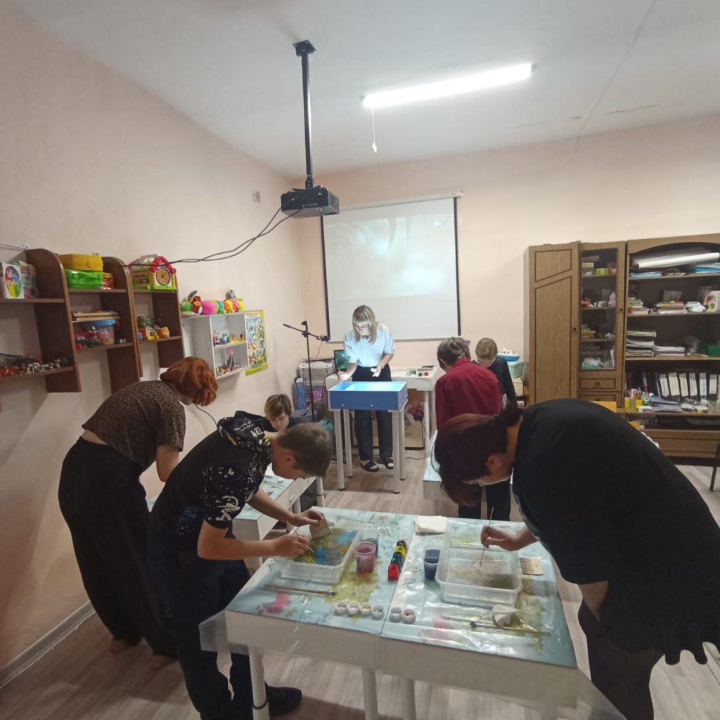 Для детей во время встречи проведен мастер-класс «Магия красок», с использованием техники рисования на воде «Эбру». В процессе рисования царила атмосфера вдохновения и творчества. У ребят получились красивые, интересные и фантастические рисунки.