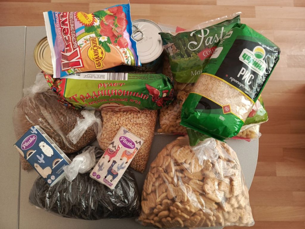 Волонтеры собрали корзину продуктов питания первой необходимости.