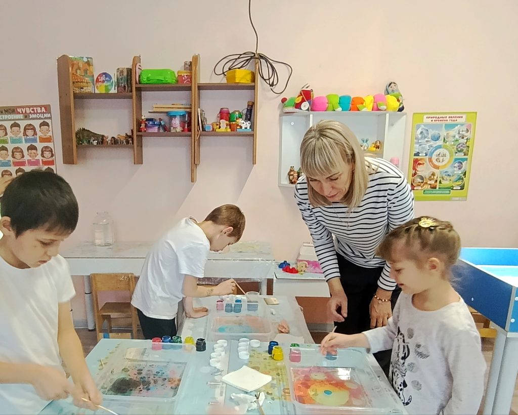 В нашей студии прошло необычное занятие — погружение в завораживающий мир техники Эбру, или искусства рисования на воде.