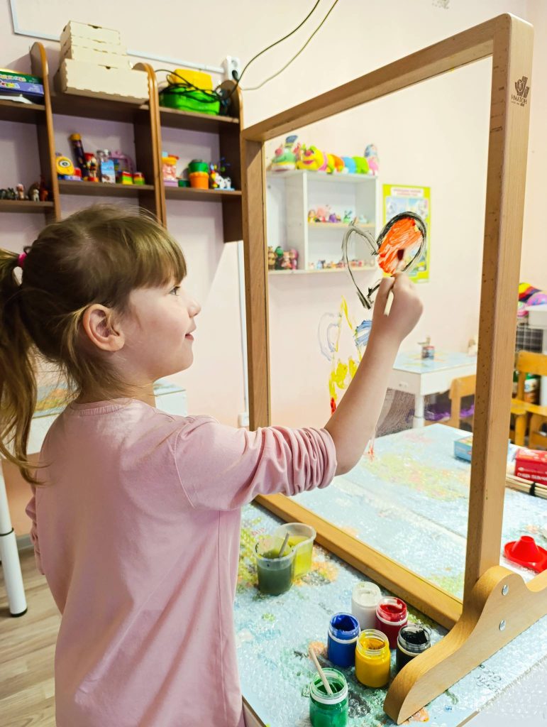 На наших индивидуальных занятиях мы используем удивительный инструмент — прозрачный мольберт. Это не просто рисование красками. Это особенный процесс, где между ребенком и педагогом нет преград.