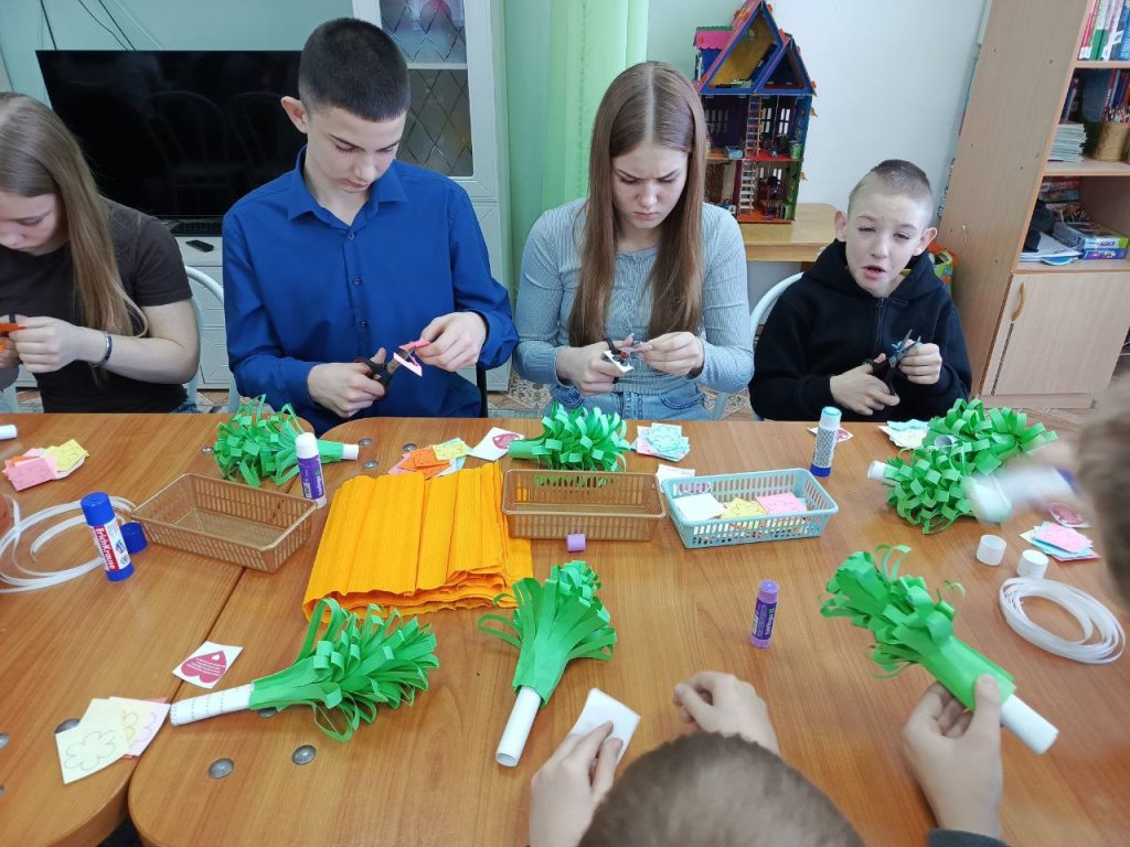 Волонтеры добровольческого отряда «Я+Мир» в преддверии праздника Дня матери для ребят провели мастер-класс «Букетик для мамы».
