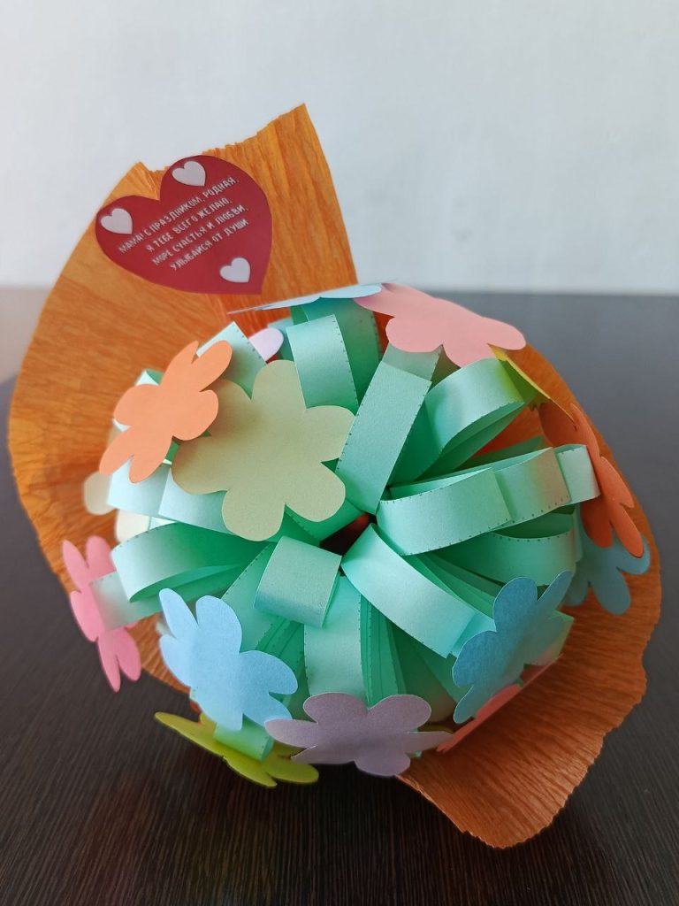 Изготовление букета принесло массу удовольствия и радости. Ребята смогли вложить в него не только мастерство и терпение, но и талант, фантазию и, конечно же, любовь к родному человеку.