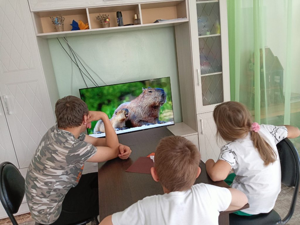 Из видео ролика ребята узнали кто такие капибары, где обитают, как выглядят, что по размеру капибары скорее напоминают собаку, чем других грызунов — например, мышь или крысу. А внешним видом — морскую свинку. Капибары обладают спокойным и дружелюбным нравом. Они хорошо относятся к людям, их легко приручить и чему-то научить и чем питаются. Легко поддаются тренировкам.