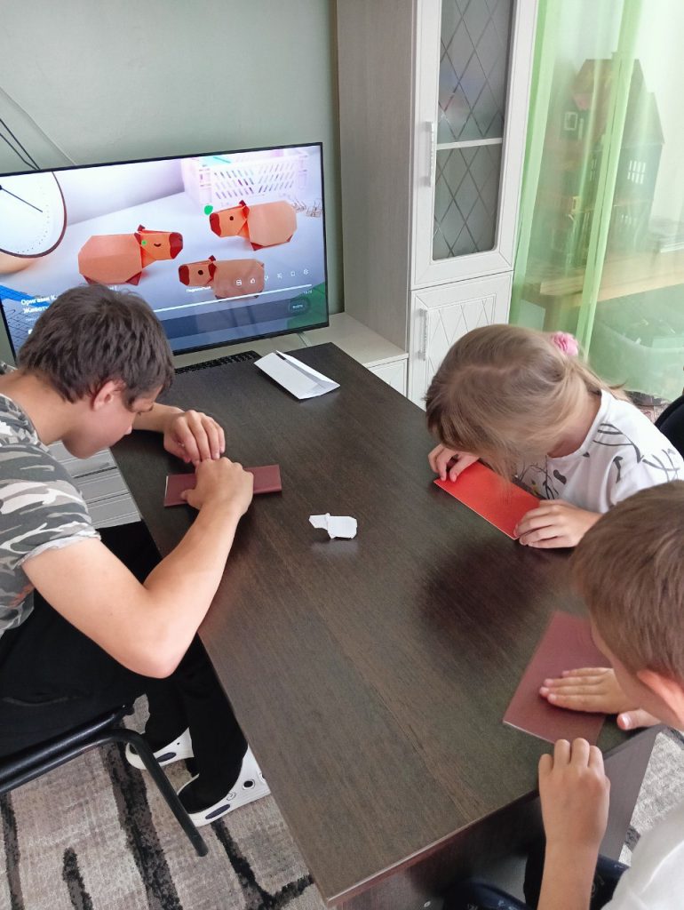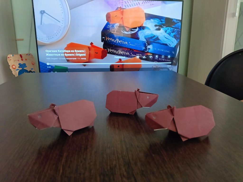 28 сентября с ребятами нашего Центра прошел мастер-класс по изготовлению поделки в технике конструирования из бумаги оригами зверька-капибару.
