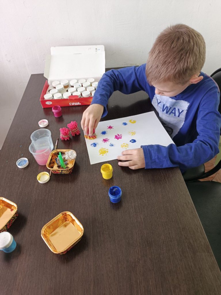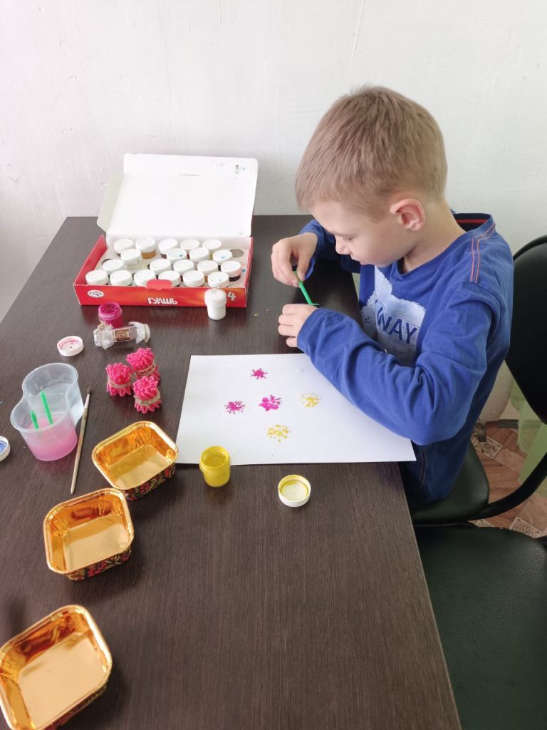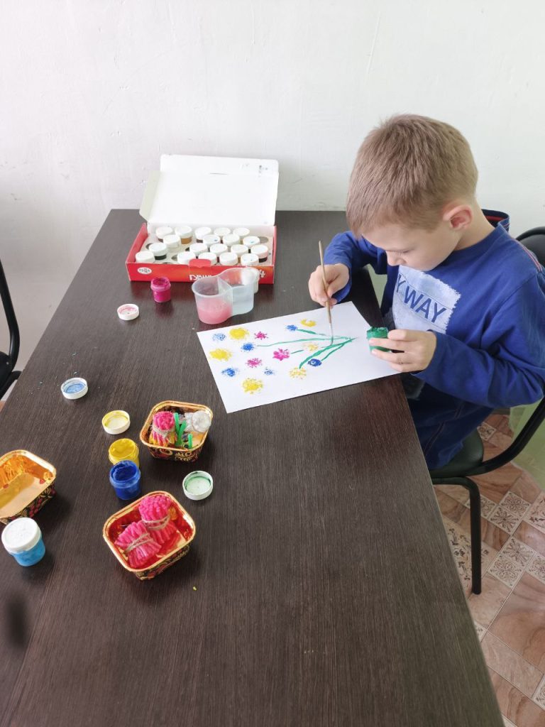 Сегодня в нашем центре прошёл мастер-класс «Красивый букет» по нетрадиционному рисованию (оттиск).