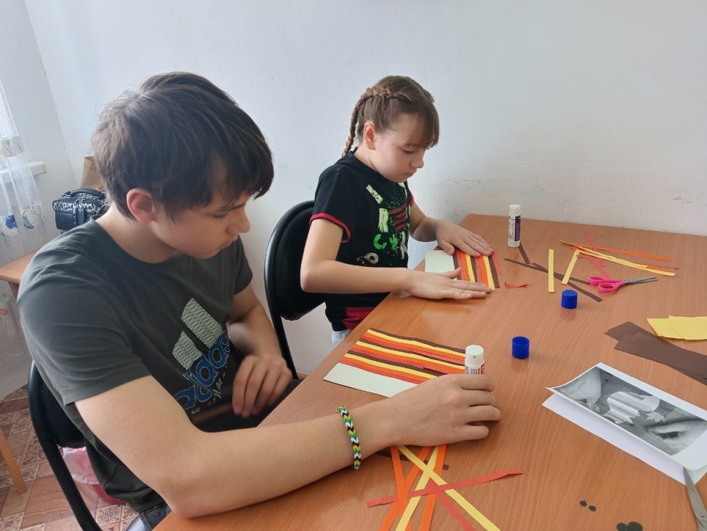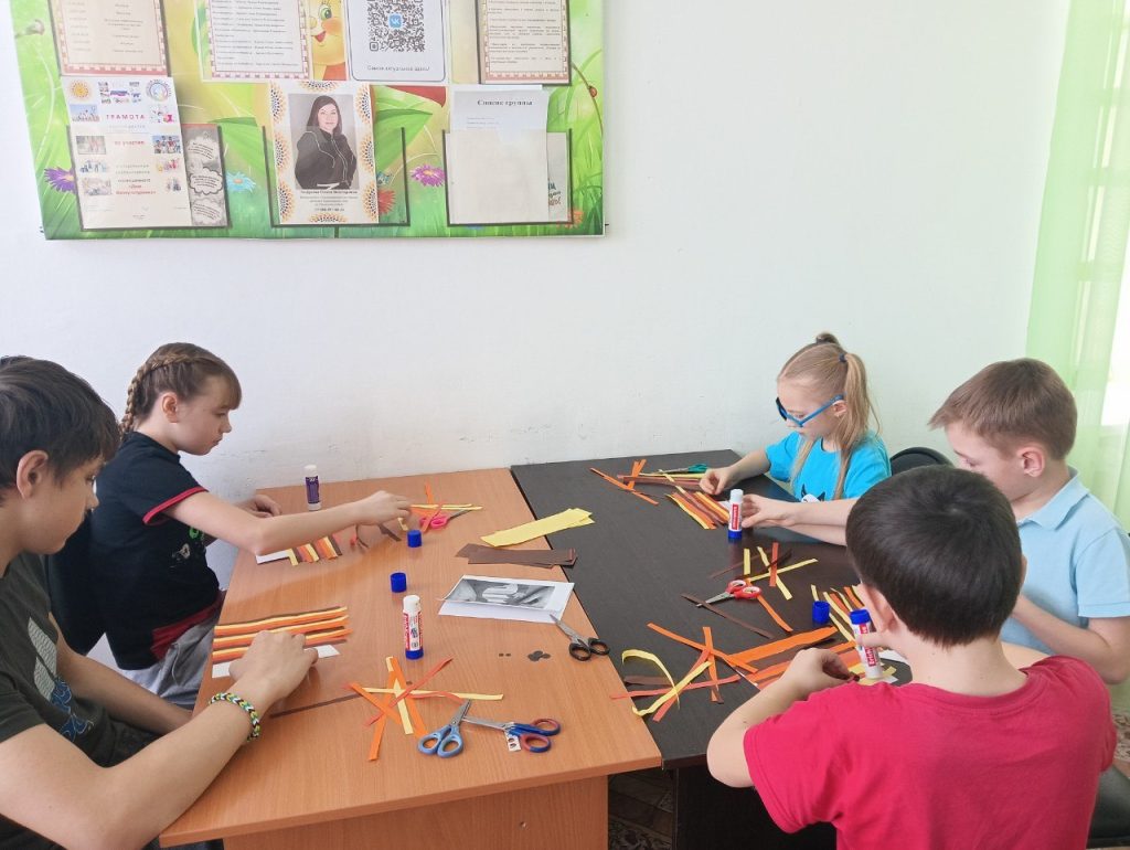 27 марта с воспитанниками Центра и ребятами группы дневного пребывания прошёл мастер-класс по аппликации лисички из полосок цветной бумаги.