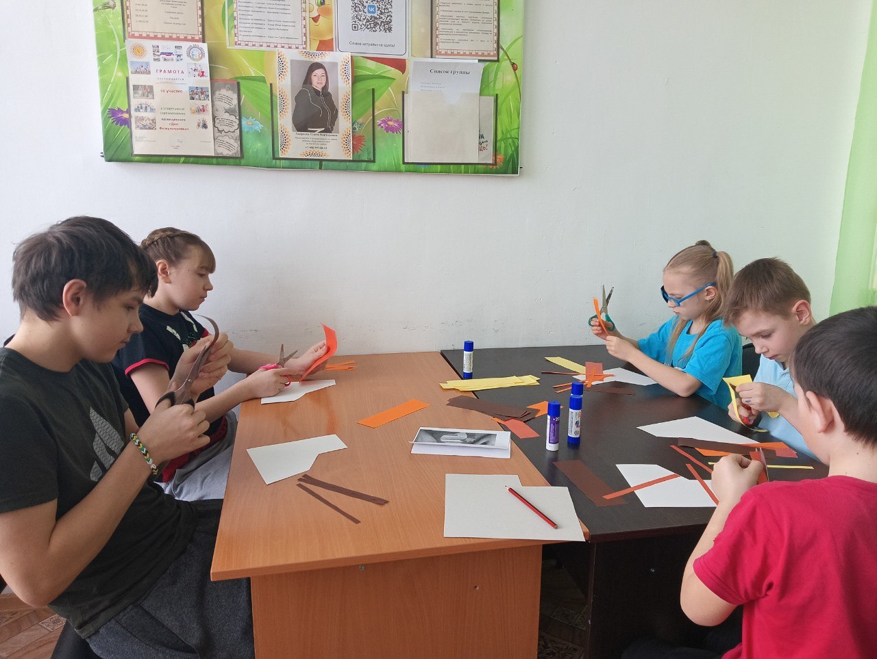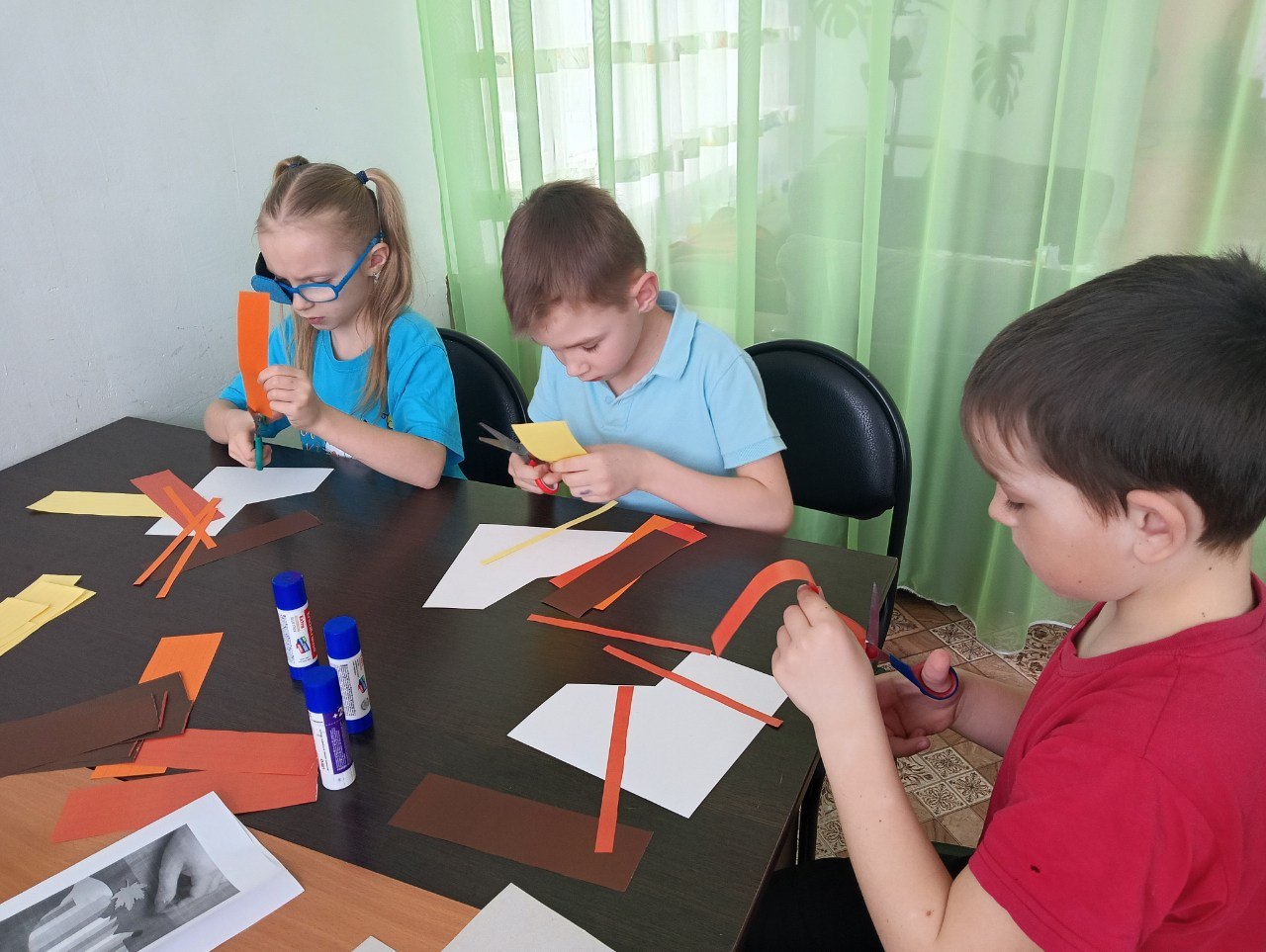 27 марта с воспитанниками Центра и ребятами группы дневного пребывания прошёл мастер-класс по аппликации лисички из полосок цветной бумаги.