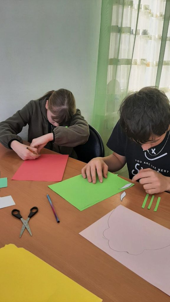 Открытки создавались из обычной цветной бумаги, ножниц и клея. Юные мастера узнали, как правильно выбирать цвета, составлять композицию и украшать открытку аппликацией. Специалисты центра подробно объясняли и показывали процесс изготовления пошагово, чтобы ребята могли легко повторить.