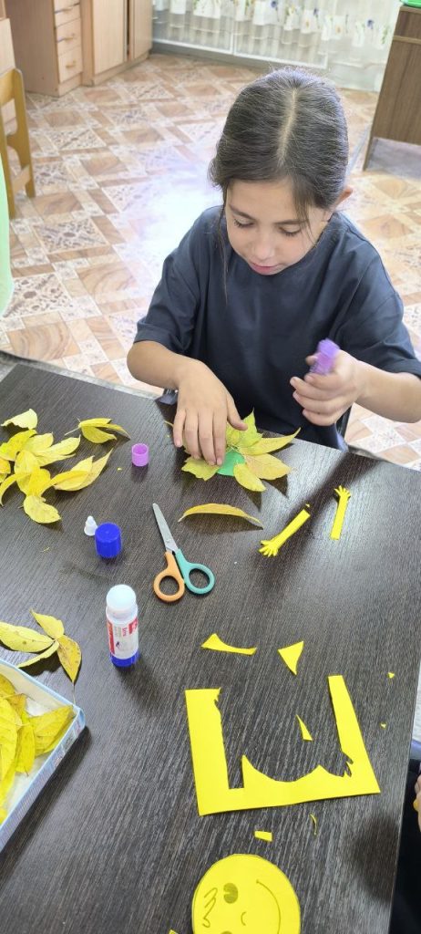Дети с энтузиазмом принялись за работу. Каждый листок тщательно выбирался, обсуждался – какой подойдет лучше всего для лучика. Это было не просто занятие, а настоящее исследование: дети учились видеть красоту в деталях, развивали свою фантазию и, конечно же, становились ближе к природе.