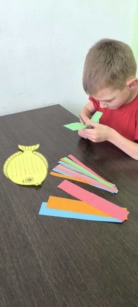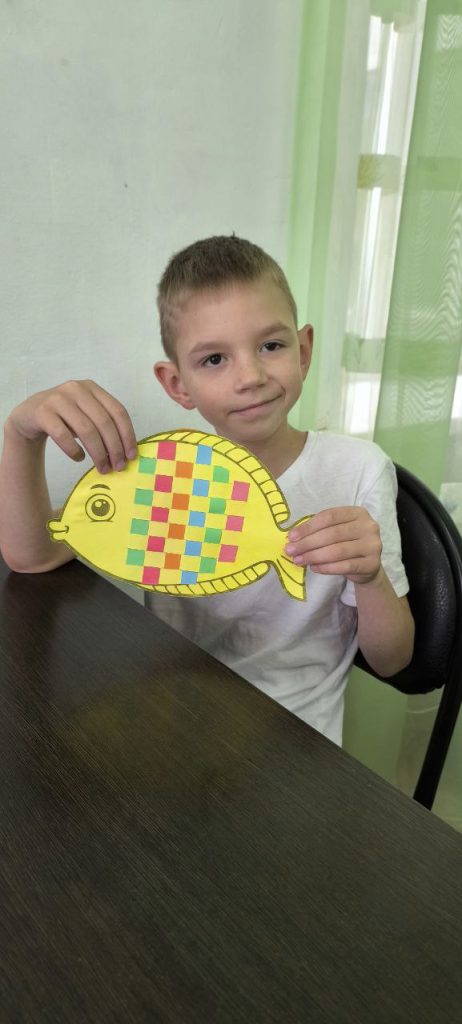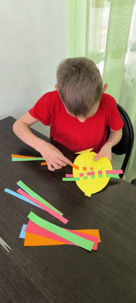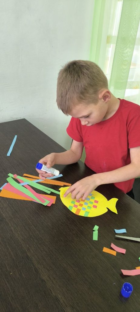 Сегодня для воспитанников центра состоялся мастер-класс в технике плетения из цветной бумаги «Рыбка».