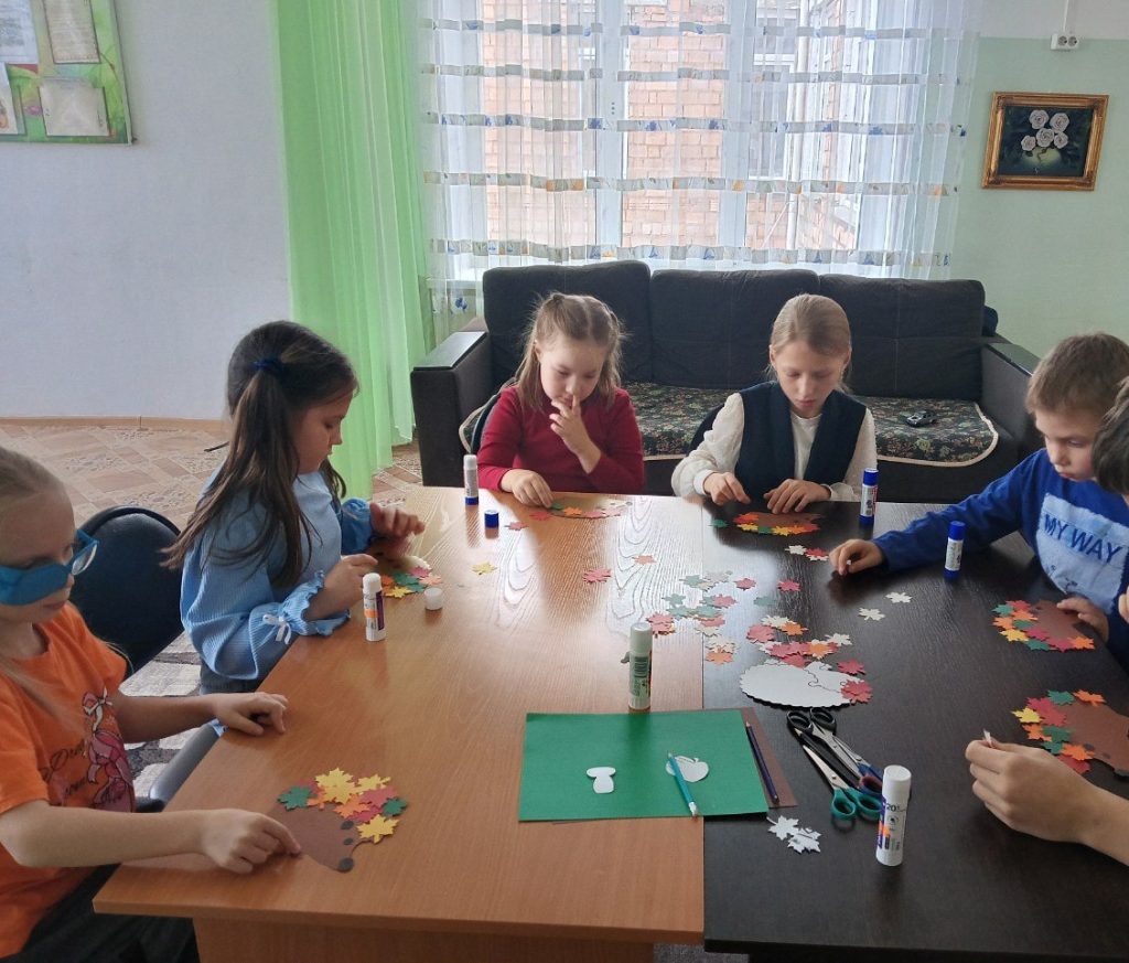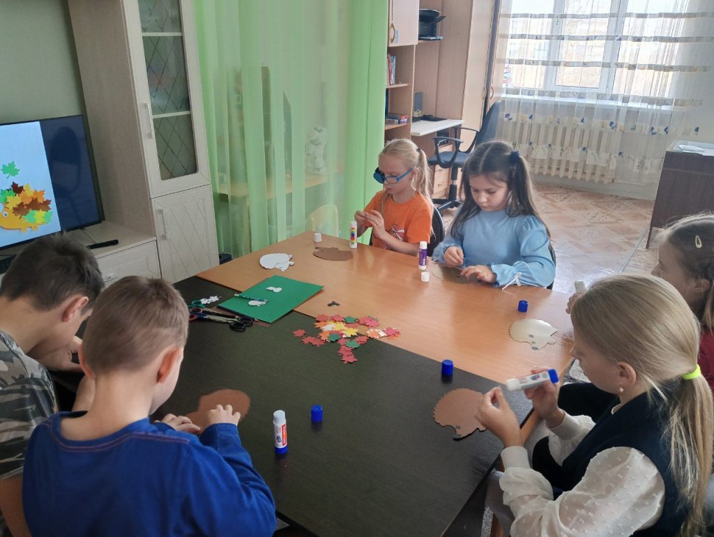 На занятии ребята создавали забавных ежиков из кленовых листьев на цветном картоне!