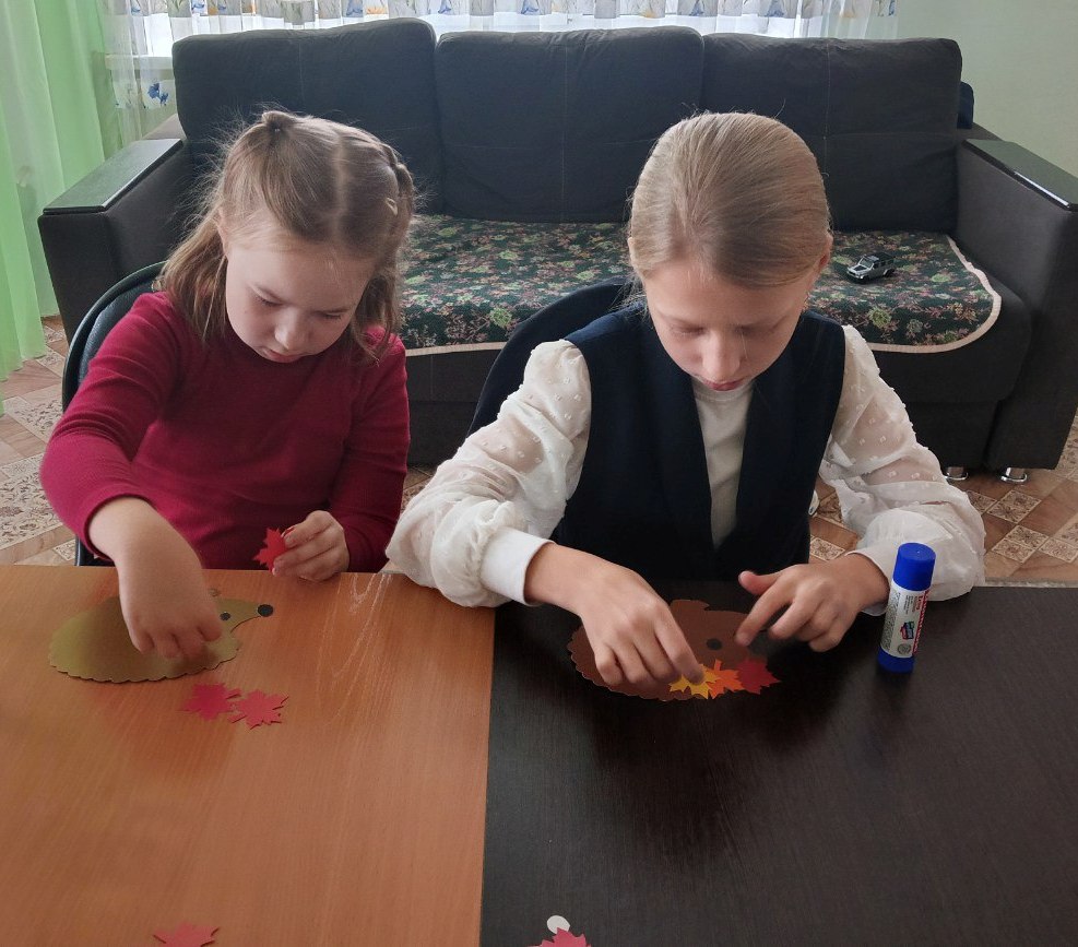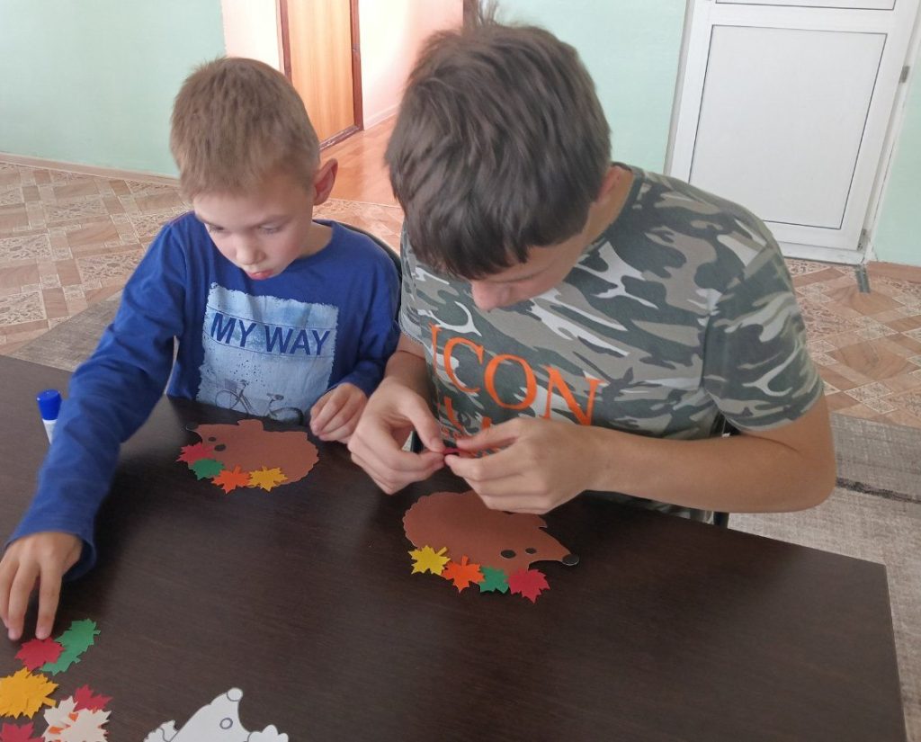 23 октября в Центре семьи «Ужурский» с ребятами центра и с группой дневного пребывания прошёл мастер-класс по изготовлению ежа из кленовых листьев из цветной бумаги.