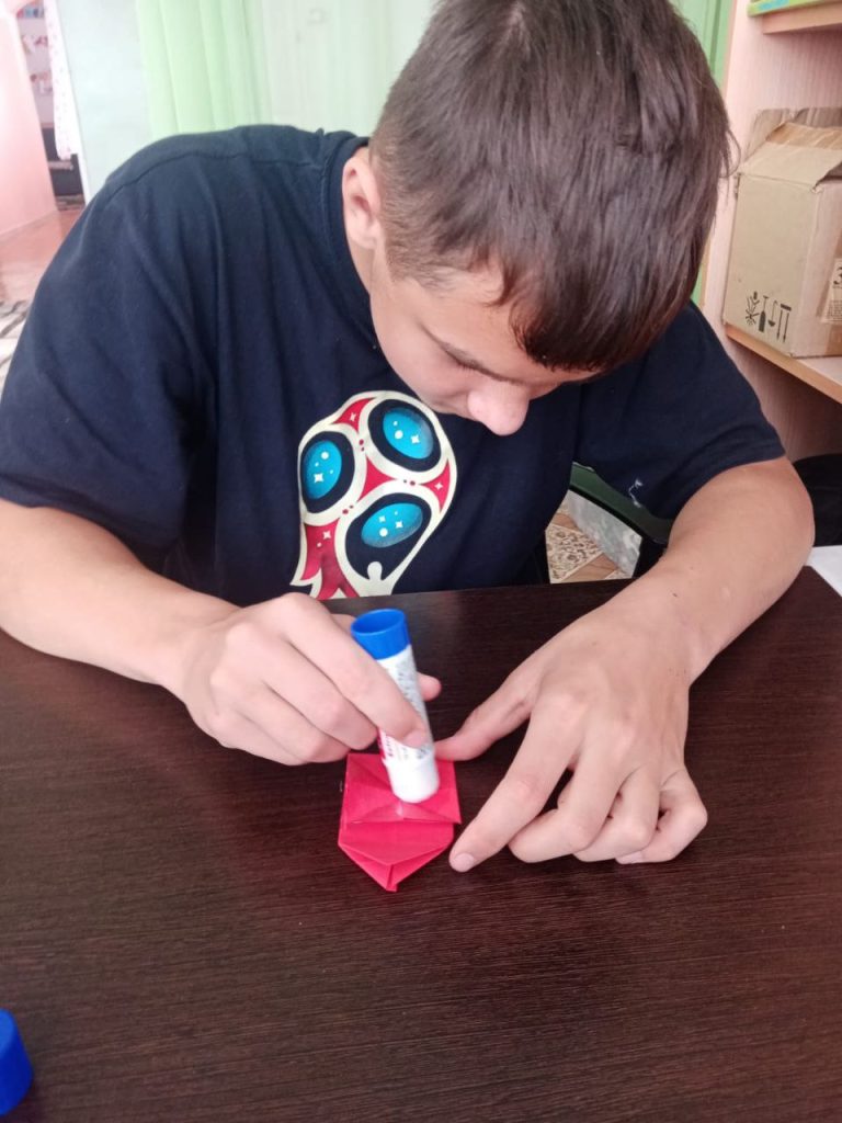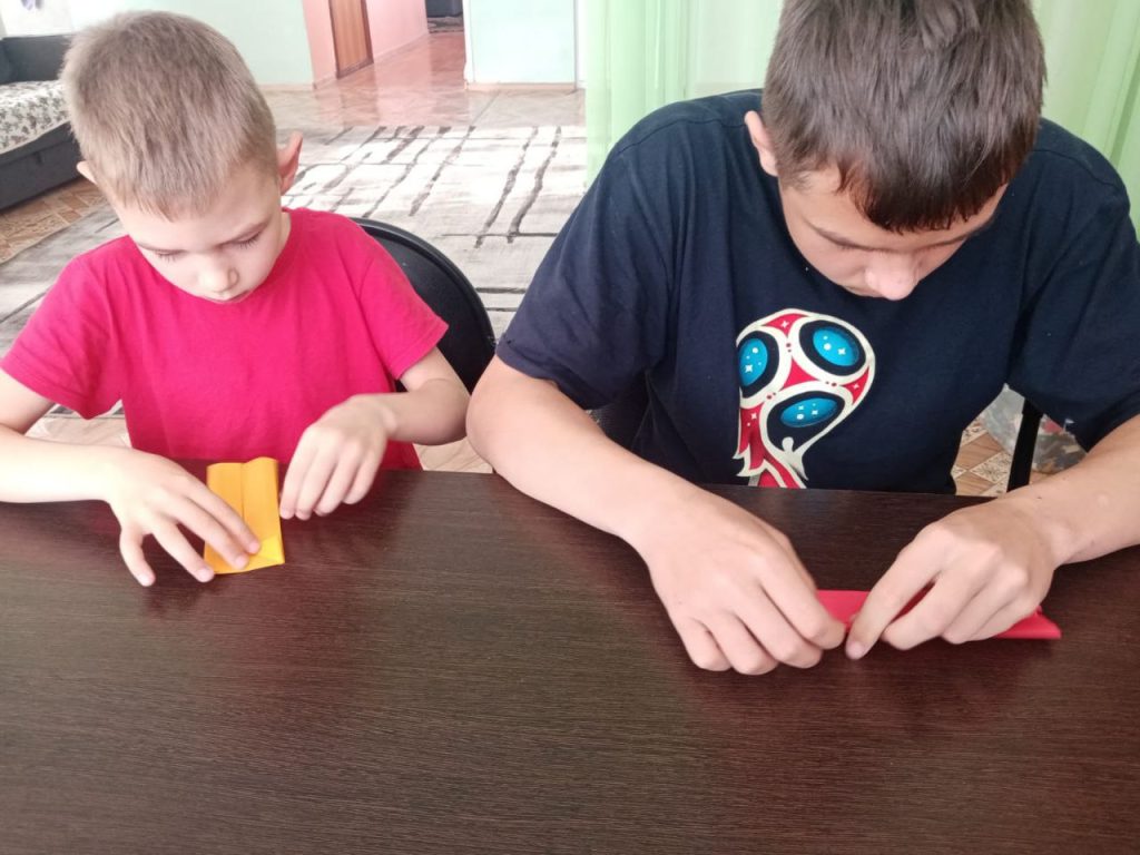 Сегодня в Центре семьи «Ужурский» ребята сами изготовили себе интересную и увлекательную игру «Мини баскетбол» в технике оригами.