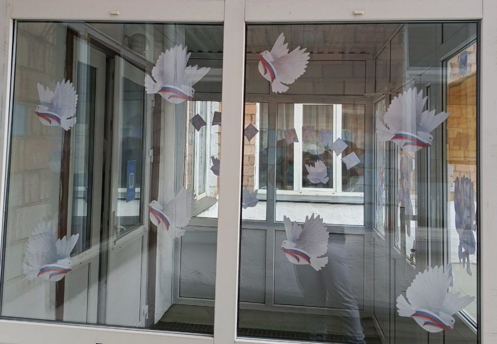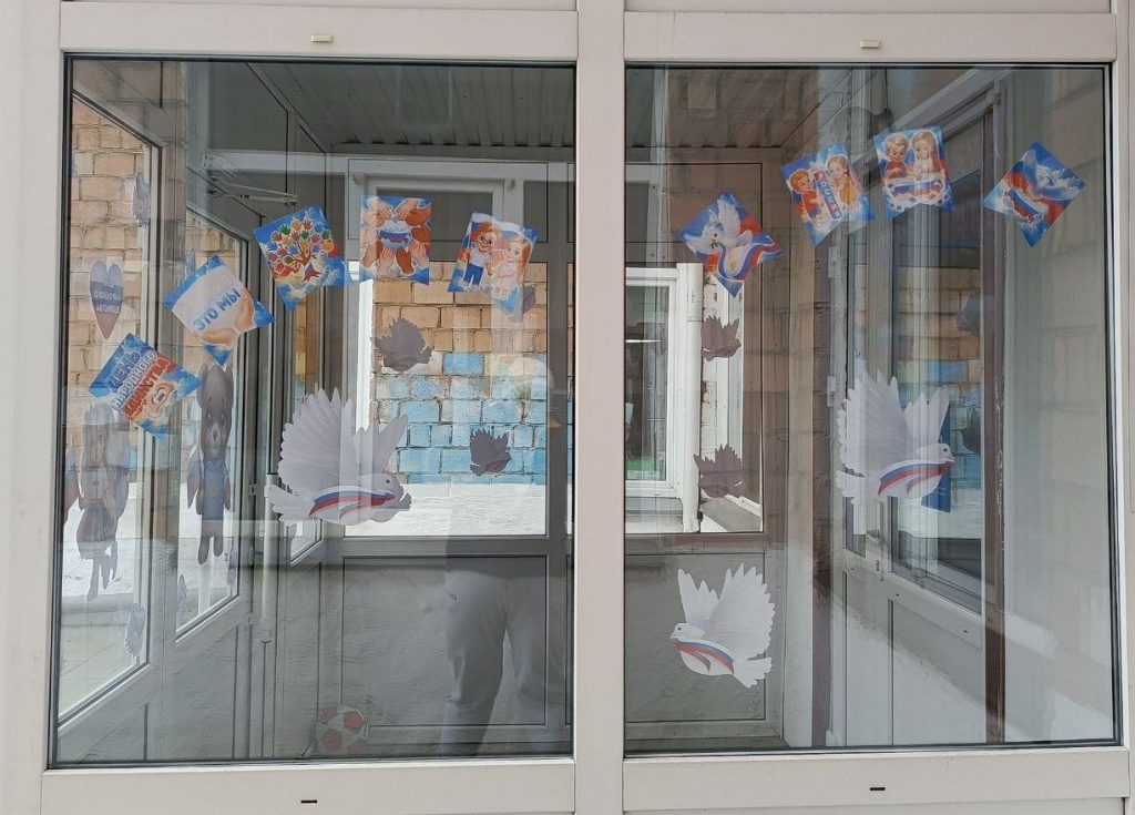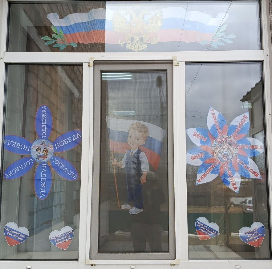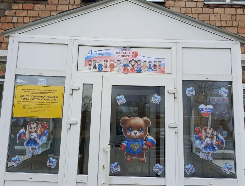 В преддверии праздника волонтеры добровольческого отряда «Я+Мир» Центра семьи «Ужурский» оформили «Окна Единства».