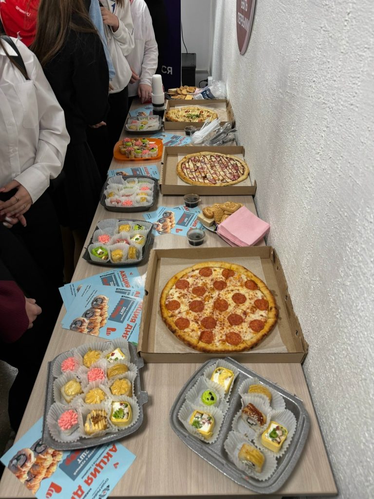 Приятным сюрпризом оказались угощения для волонтеров. Был организован чайный стол. Спонсоры мероприятия, компания Суши Рыбки угощали волонтеров вкусной пиццей и сушами