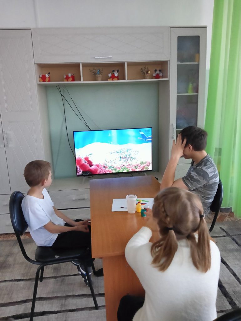 Затем ребята просмотрели мультипликационный фильм «Осторожно, микробы».