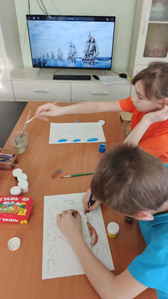 Сегодня, в предверии празднования 23 февраля ребята нашего центра в своей ИЗО-студии «Волшебная кисть» решили нарисовать русскую эскадру. Ведь защитники Отечества есть не только на суше, но и на воде. А значит это и их праздник тоже.