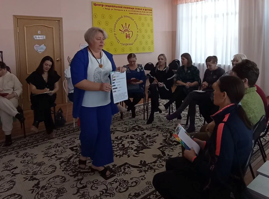 В преддверии Дня матери в рамках работы психологического клуба «Беседка» в Центре семьи «Ужурский» прошел особенный интерактивный тренинг для родителей под названием «Мама — это…».