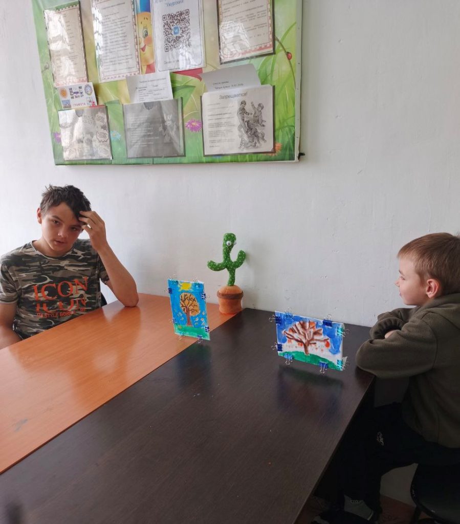 В начале занятия прошла беседа об осени, чем богато это время года, после ребята принялись за работу. Кисточки, краски, белое полотно вот немного, что надо для творчества. Дети, почувствовав себя художниками, принялись за дело. Взяв всё необходимое, немного пофантазировав и проявив свои творческие способности, ребята сделали настоящие шедевры с интересным рисунком. Получились осенние картинки яркие и нарядные.