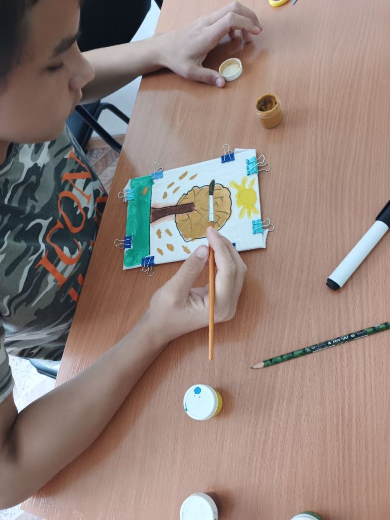 Сегодня в нашем центре прошло творческое занятие, с использованием техники мягкая роспись по ткани.