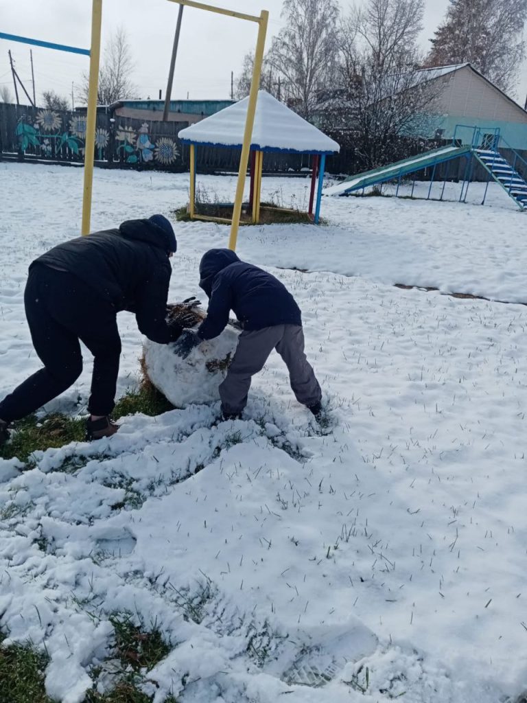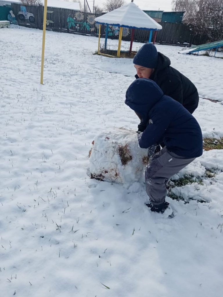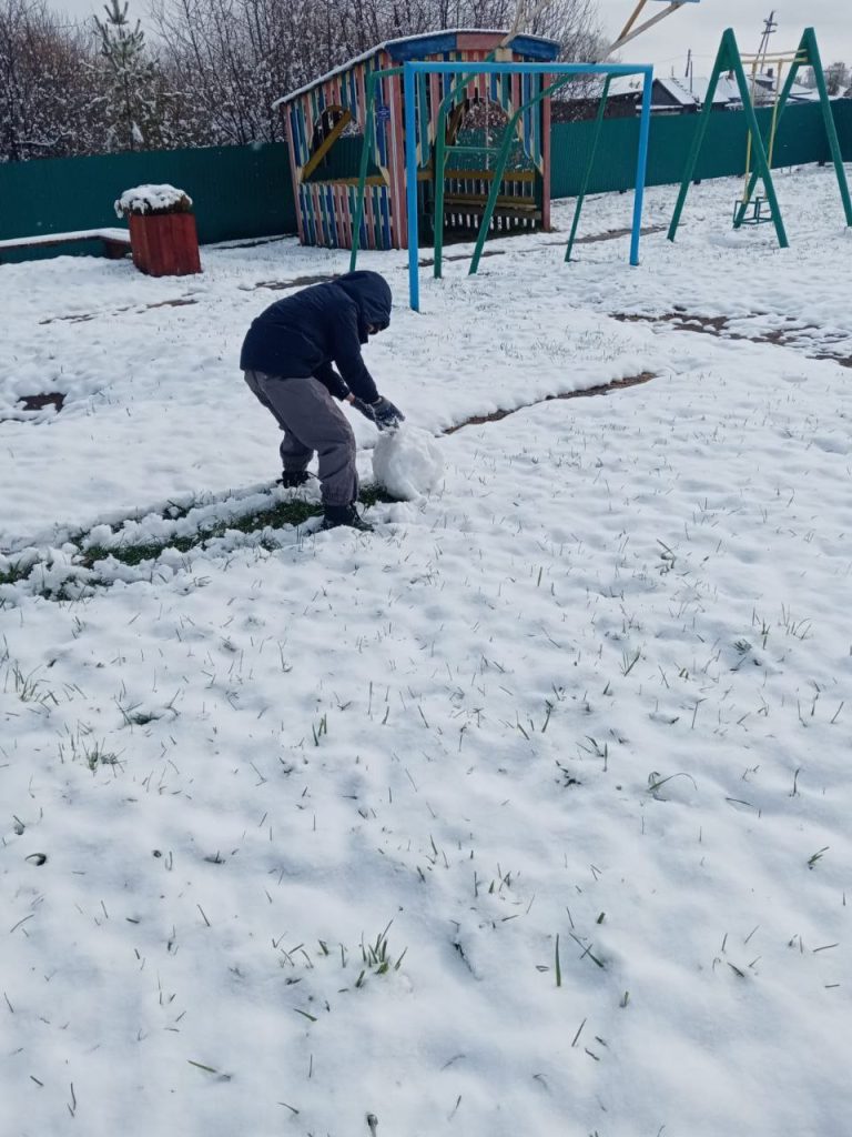 В это время дети с удовольствием выходят на прогулку. Ведь так хочется потрогать руками снег, поймать в ладошки снежинку и, конечно, поиграть в игры со снегом. Вот мы и решили слепить веселого снеговика, чтобы украсить наш участок.