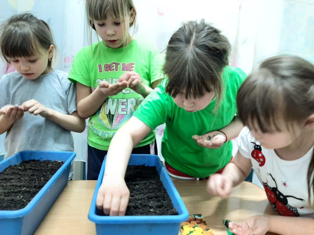 Дети садили рассаду для клумб. Каждый посадил свое растение, в которое внес частичку душевной теплоты.