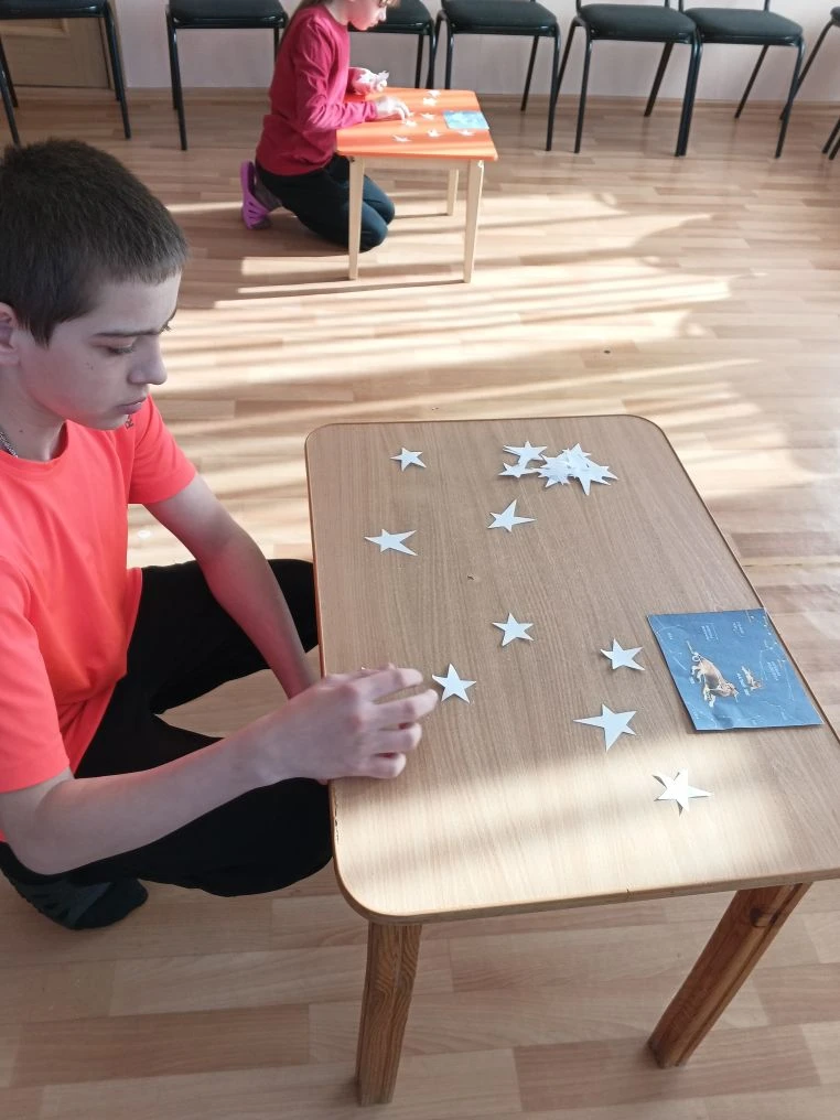 Испытания начались с интересного путешествия – по галактике «Угадай-ка», где ребятам нужно было отвечать на вопросы, пройти испытание «Полет к созвездию», где им нужно было выложить из звезд макет созвездия весеннего неба.